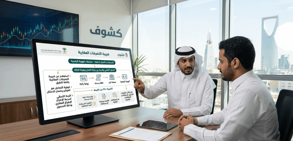 إن عملية الاستعلام عن ضريبة التصرفات العقارية أصبحت ميسرة بفضل التكامل التقني بين الجهات الحكومية في المملكة. ومع ذلك، تبقى الدقة في إدخال البيانات وفهم مواد اللائحة هي الضمان الحقيقي لتجنب الغرامات. في مكتب كشوف، نحن هنا لنكون شريكك التقني والمهني في كل خطوة، لنضمن لك تجربة عقارية خالية من التعقيدات الضريبية.
