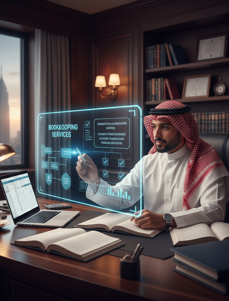 في كشوف، نوفّر لك خدمة مسك دفاتر محاسبية متكاملة مصمّمة لمساعدتك على ضبط الأمور المالية، وتوفير الوقت، وتقليل الأخطاء، بأسلوب احترافي متوافق مع أنظمة الزكاة والضرائب السعودية.